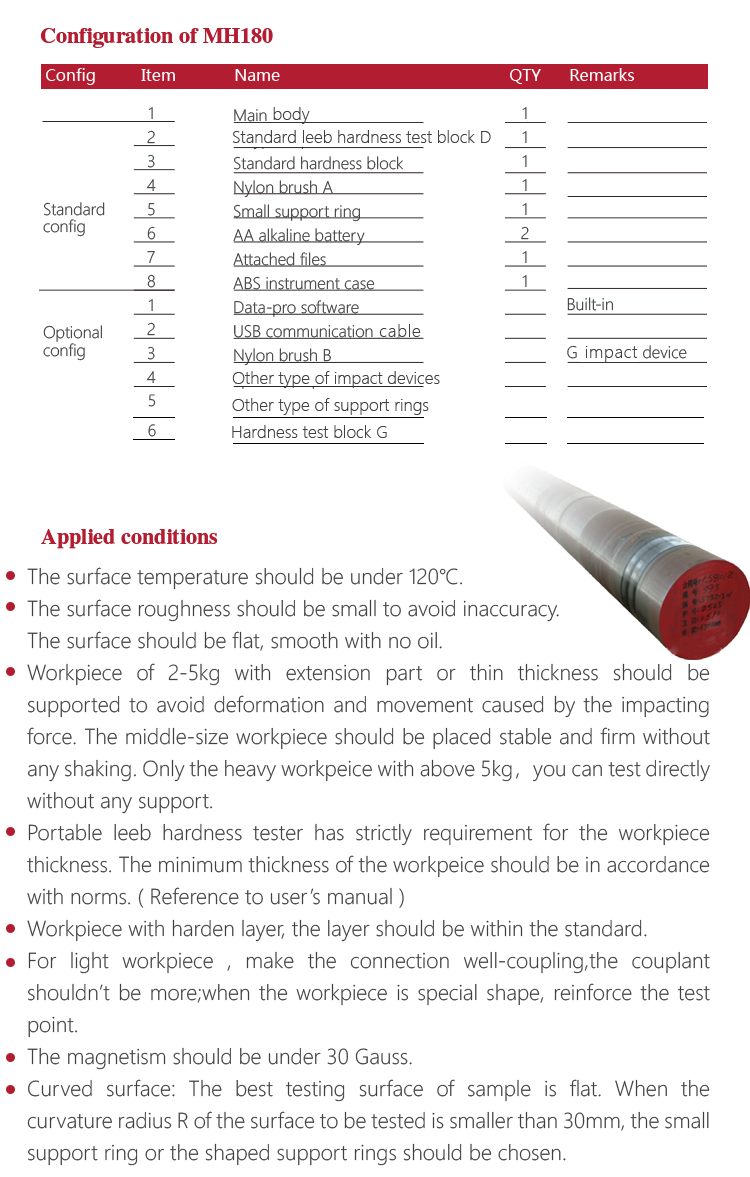 Portable Leeb hardness tester has strict requirements for sample thickness , the minimum thickness shall comply with regulatory (see instructions).