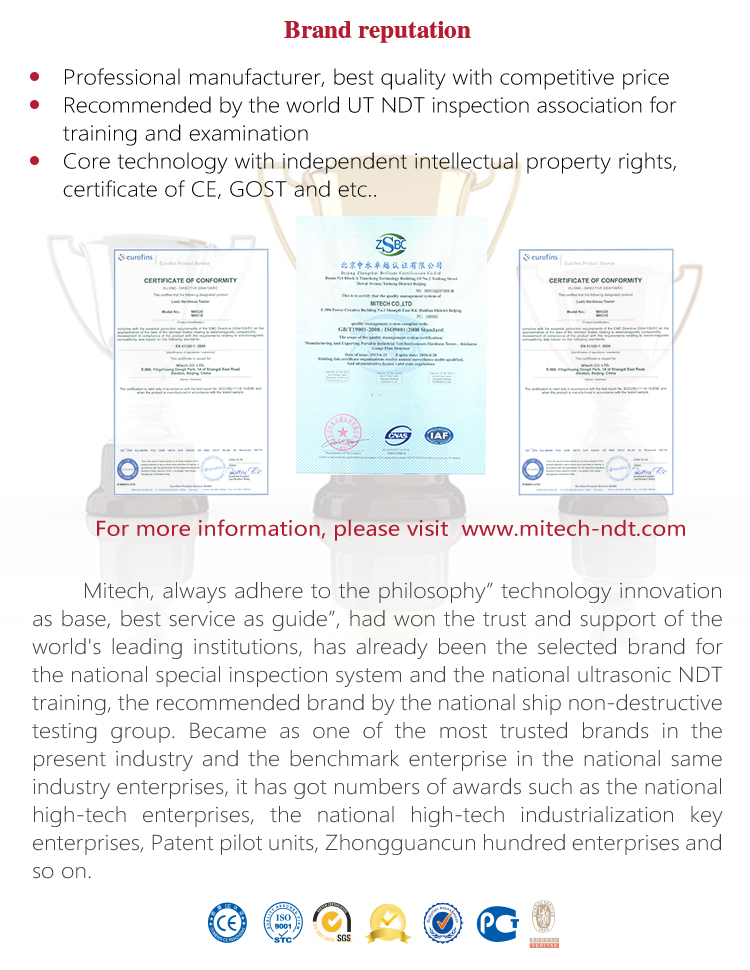 Mitech Series portable leeb hardness testers with customized attached files including product certificate, warranty card, product manual, packing list. The attached files adopt the special printed paper. The manual is with graphic design, beautiful, easy to understand, easy to save for a long time. Note: The electronic version of Mitech attached files can be downloaded from www.walad.cn. |