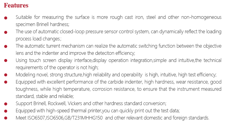 l Meet ISO6507, ISO6506, GB / T231, JJG150 and other relevant domestic and foreign standards.