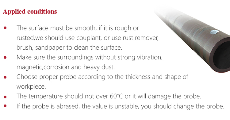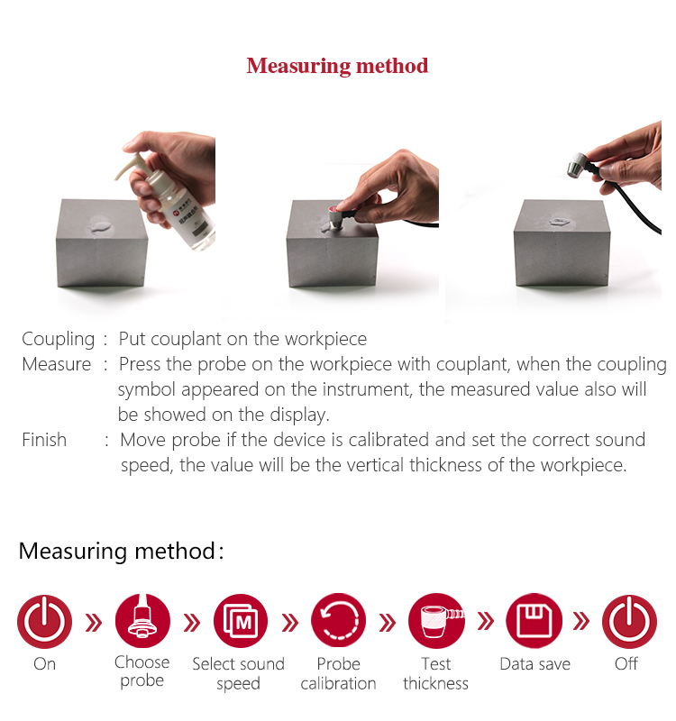 Suitable for measuring metal (such as steel, cast iron, aluminum, copper, etc.) , plastics, ceramics, glass, fiber glass and any other good ultrasonic conductors;