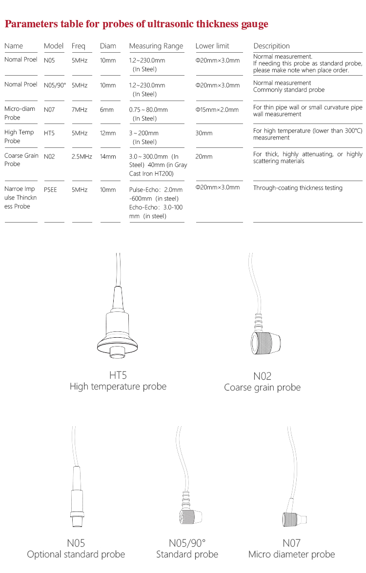Probe Diameter | Standard N05 is10MM、Probe N07 is 6MM、Probe HT5 is12MM、Probe N02 is12MM |
