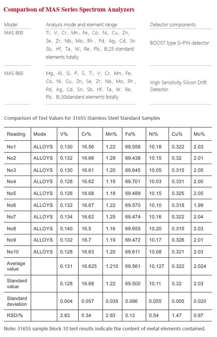 Applicable materials | For the detection of iron-based alloy series(Stainless steel, chrome / molybdenum alloy steel, low a |