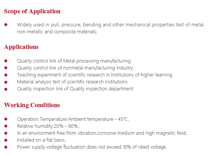Test machine is a large precision instruments, should pay attention to water, moisture. Exposed workstations, upper and lower beam parts and attached parts should be coated with anti-rust oil to prevent rust;