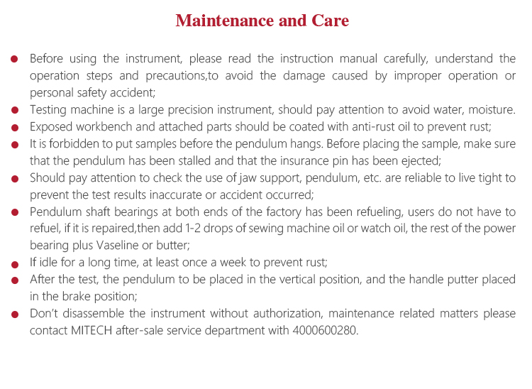 l Should pay attention to check the use of jaw support, pendulum, etc. are reliable to live tight to prevent the test results