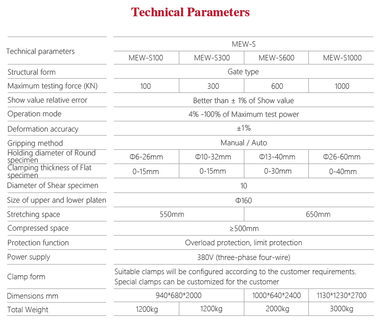 Mitech MEW-S digital display series hydraulic universal testing machine, by controlling the high-pressure pump to drive the screw movement, equipped with the corresponding auxiliary for metal, non-metallic and composite materials for stretching, compression, bending, cutting, stripping, tear.With using digital processing, high-precision data acquisition and control technology, graphical interface, integrated design, it owns stable performance, strong structure, high reliability, simple operation. Widely used in metal and non-metallic processing industry, quality inspection departments quality testing, scientific research and other areas of higher education institutions.It is the necessary professional precision testing equipment for improving production efficiency and saving production costs.