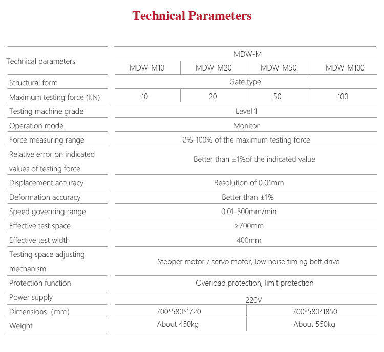 Mitech MDW-M series of micro control wood-based universal testing machine, through the single-chip automatic control motor driving screw movement, can do various of physical and chemical properties of the test for wood-based panels and decorative panels. With built-in controller, AC servo motor, automatic control and data acquisition system, stable performance, strong structure, high reliability, simple operation, high degree of automation, it widely used in the wood-based panels and decorative panels of the internal bond strength, surface bonding strength, tensile strength test, bending test, elastic modulus test, grip force test and plywood shear cut test. It is a necessary professional precision testing equipment for improve production efficiency and save production costs.