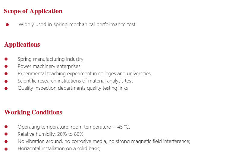 Mitech MDW-TDS digital series of Single - Arm Spring Tension/Compression Testing Machine, through the single-chip automatic control motor driving screw movement, for a variety of coil springs for tensile and compression test. it use of built-in controller, AC servo motor, automatic control and data acquisition system, stable performance, strong structure, high reliability, simple operation, high degree of automation. Widely used in spring manufacturing, low-voltage electrical appliances, power machinery, institutions of higher learning and scientific research institutes and other fields.It is the necessary professional precision testing equipment for improving production efficiency and saving production costs.