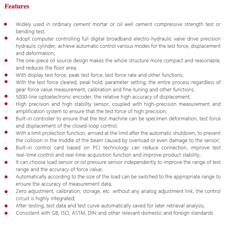 l Widely used in ordinary cement mortar or oil well cement compressive strength test or bending test;