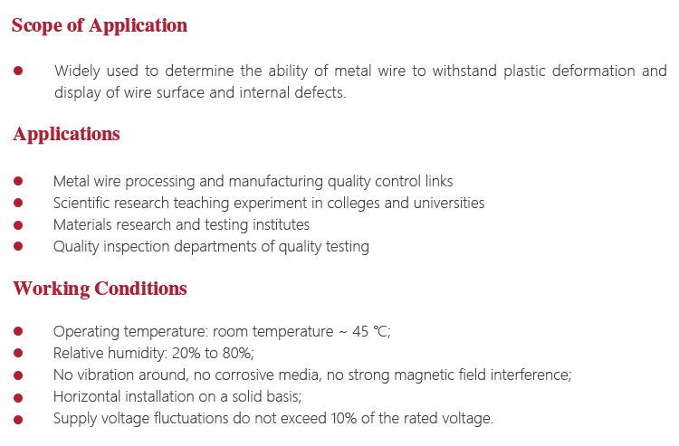 l Widely used to determine the ability of metal wire to withstand plastic deformation and display of wire surface and internal defects;