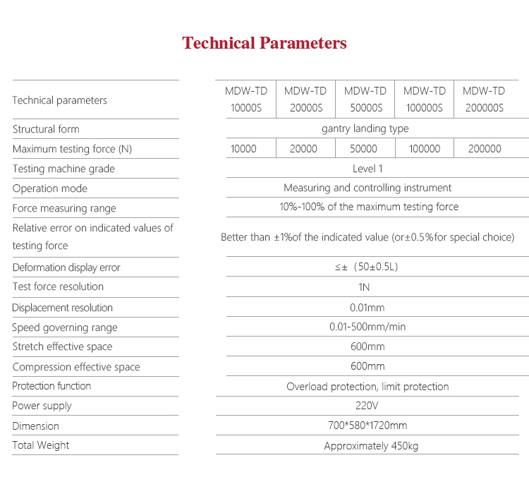 Mitech MDW-S digital display series gantry landing type Spring Tension/Compression Testing Machine, through the single-chip automatic control motor driving screw movement,  for a variety of coil springs for tensile and compression test. it use of built-in controller, AC servo motor, automatic control and data acquisition system, stable performance, strong structure, high reliability, simple operation, high degree of automation. Widely used in spring manufacturing, low-voltage electrical appliances, power machinery, institutions of higher learning and scientific research institutes and other fields.It is the necessary professional precision testing equipment for improving production efficiency and saving production costs.