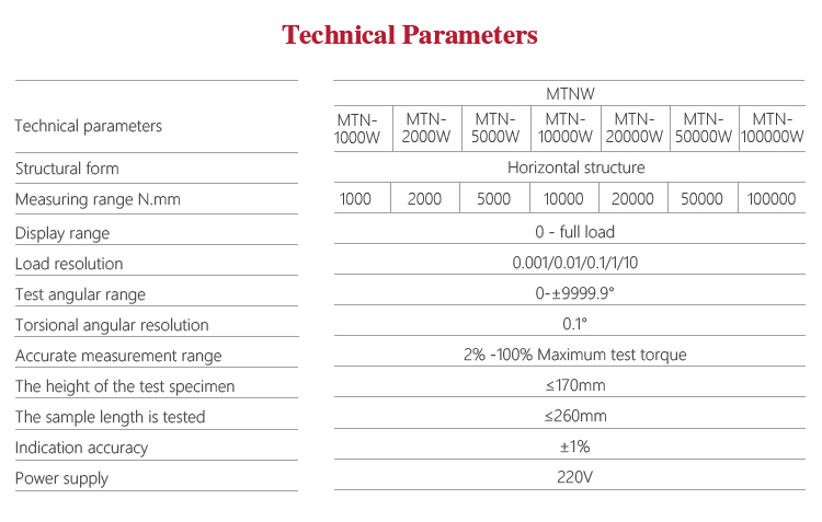 Mitech MTNW horizontal manual spring torsion testing machine, by the manual loading test force, can be used for a variety of coil spring test, the use of manual loading, computer control, digital intelligent display, its stable performance, simple operation, strong and simple structure, high efficiency. Widely used in spring manufacturing, low-voltage electrical appliances, power machinery, institutions of higher learning and scientific research units and other fields.It is the necessary professional precision testing equipment for improving production efficiency and saving production costs.
