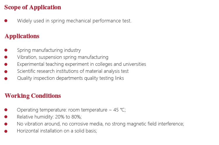 Spring tension and compression testing machine, the sensor force generated by the signal sent to the measurement amplifier, amplified into the A / D converter into a digital signal is accepted by the computer system,by the computer system to accept the digital processing, the computer system to deal with the operation of A / D converter to the signal through the LCD display data.