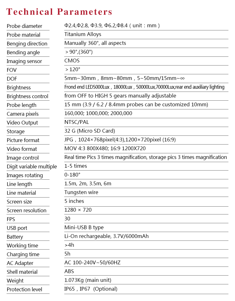 Probe diameter | ?2.4, ?3.9, ?6,?8(unit:mm) |