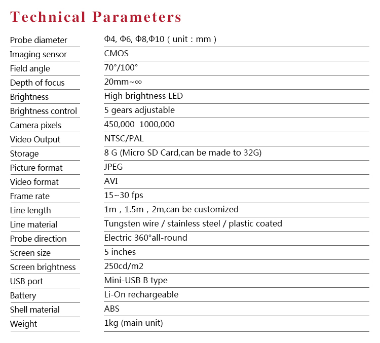 Probe diameter | ?4, ?6, ?8,?10(unit:mm) |