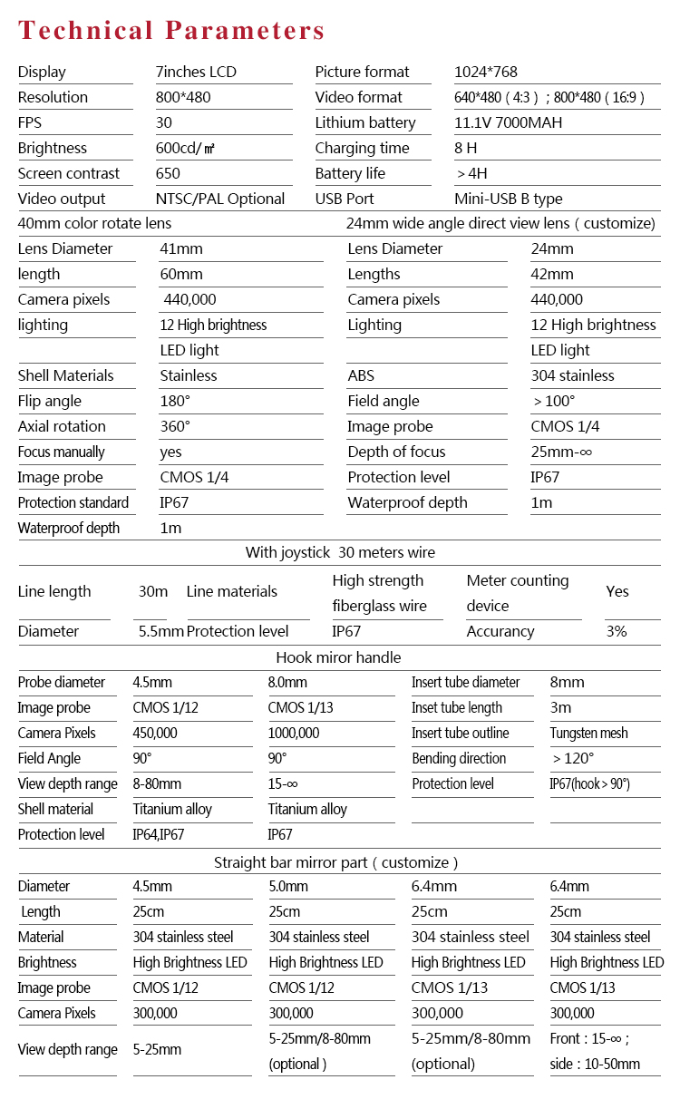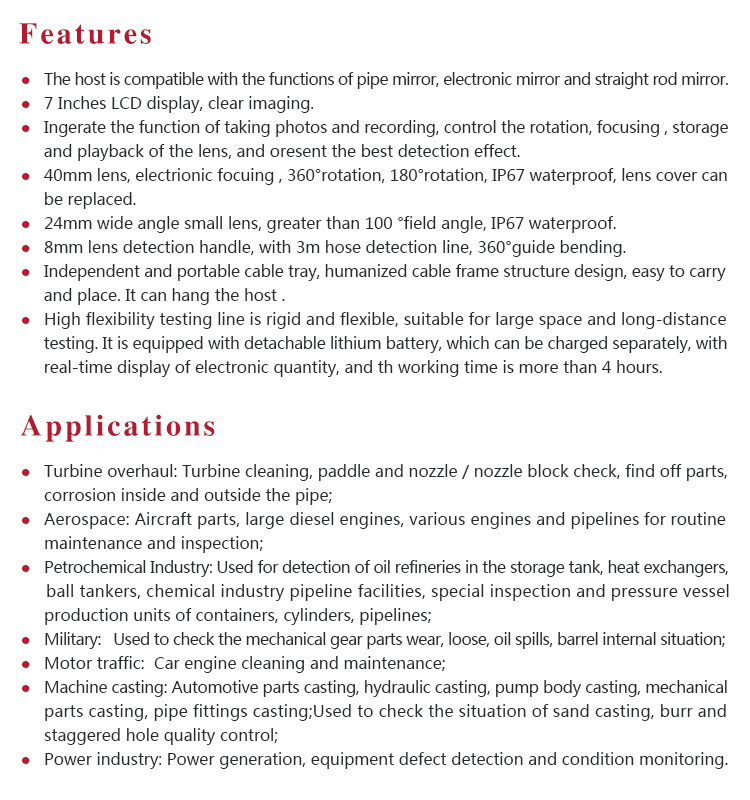 l The host is compatible with the functions of pipe mirror, electronic mirror and straight rod mirror.