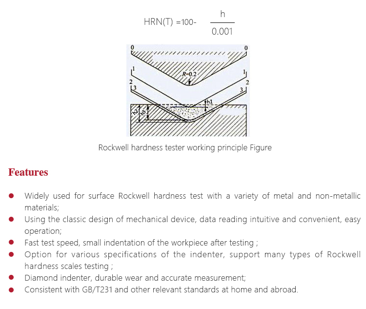 l Option for various specifications of the indenter, support many types of Rockwell hardness scales testing ;