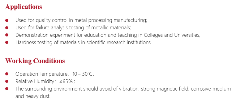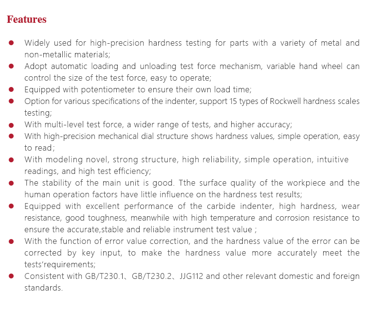 l Widely used for high-precision hardness testing for parts with a variety of metal and non-metallic materials;
