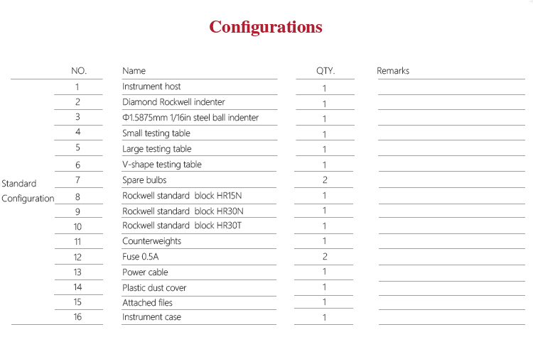 l Option for various specifications of the indenter, support 15 types of Rockwell hardness scales testing;