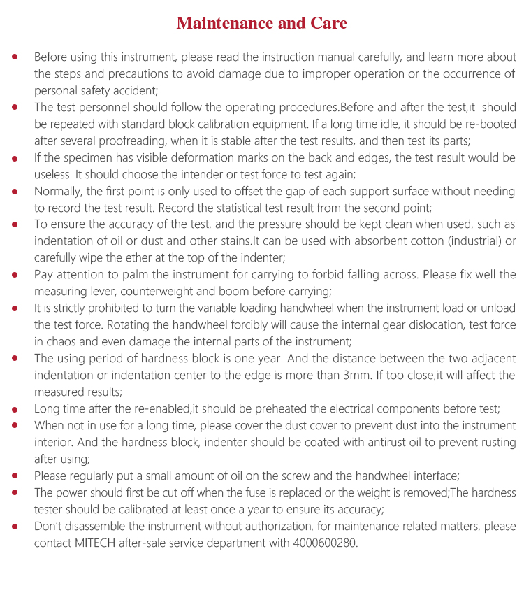 hardness block, indenter should be coated with antirust oil to prevent rusting after using;