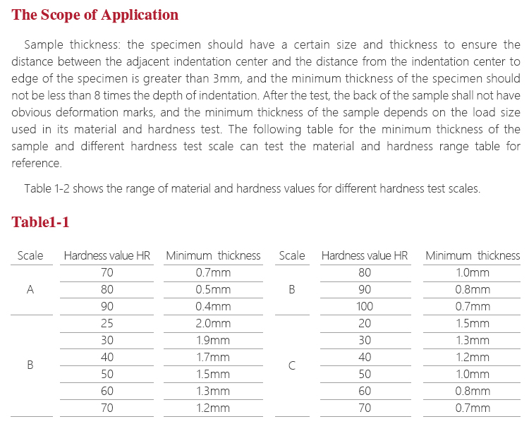 l During testing, to ensure accuracy, please make sure the distance between the adjacent indentation center and the