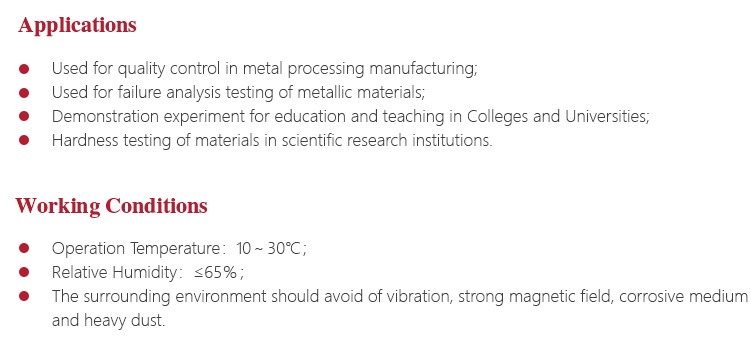 l Widely used for high-precision hardness testing for parts with a variety of metal and non-metallic materials;