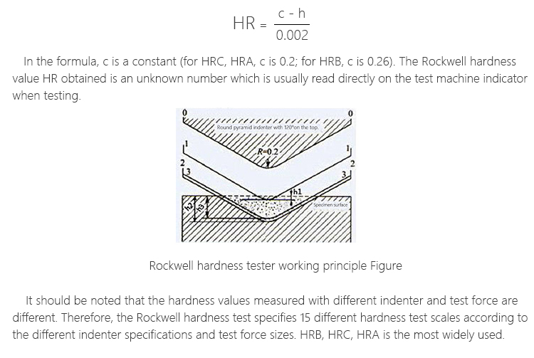 In the formula, c is a constant (for HRC, HRA, c is 0.2; for HRB, c is 0.26). The Rockwell hardness value HR obtained is an unknown number which is usually read directly on the test machine indicator when testing.