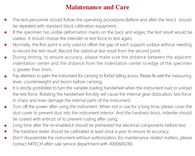 l The hardness tester should be calibrated at least once a year to ensure its accuracy;