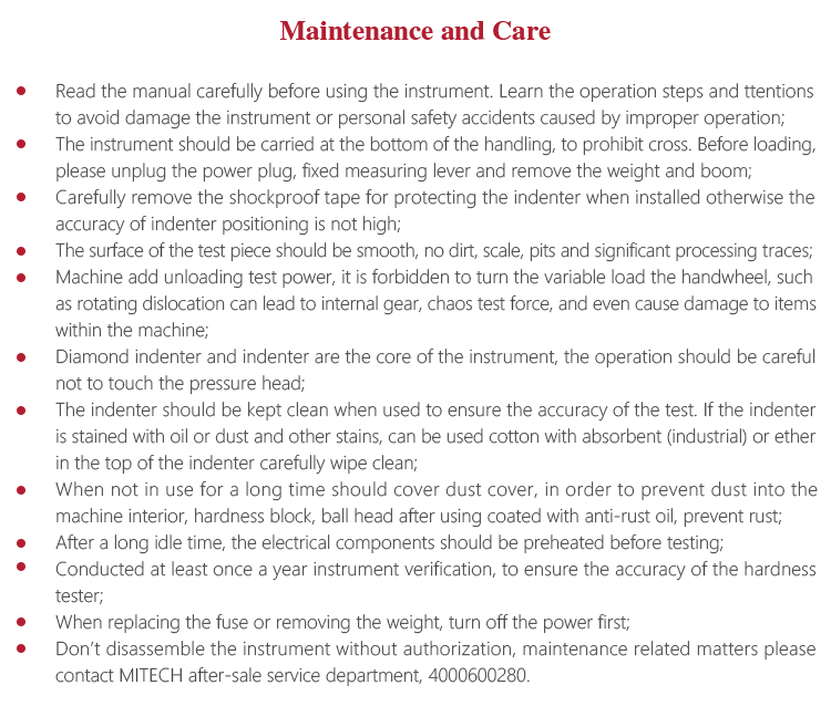Don’t disassemble the instrument without authorization, maintenance related matters please contact MITECH after-sale service department, 4000600280