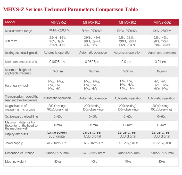 Mitech MHVS-Z Series Digital Automatic Turret Vickers Hardness Tester, based on the principle that positive quadrangular pyramid diamond indenter presses the surface of thesample to produce indentation.By measuring the diagonal length of the indentation to achieve the measurement of the hardness of the material can be for small specimens, thin specimens, surface coating, heat treatment of the workpiece surface Vickers hardness test. With stable performance, strong structure, high reliability, simple operation, digital display,adopt high magnification optical measurement system, adjust the cold light source, photoelectric sensing technology and computer-aided means it has a powerful function. It is widely used in the fields of metal processing, electronics industry, mold parts, watch manufacturing, engineering quality inspection and so on. It is an ideal hardness tester for material research and testing.