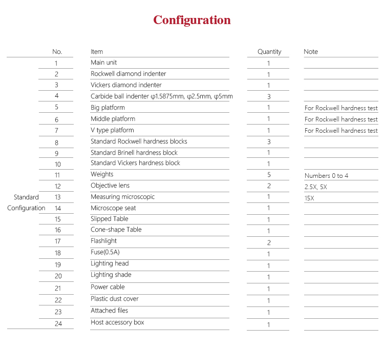 Max sample height | 200mm(Brinell, Vickers),260mm(Rockwell) |