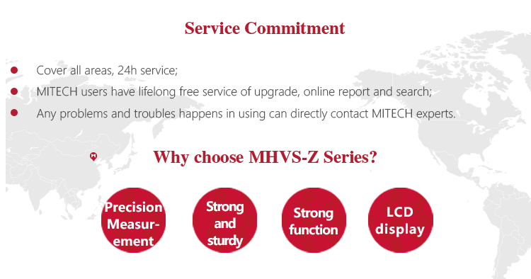 Mitech MHVS-Z Series Digital Automatic Turret Vickers Hardness Tester, based on the principle that positive quadrangular pyramid diamond indenter presses the surface of thesample to produce indentation.By measuring the diagonal length of the indentation to achieve the measurement of the hardness of the material can be for small specimens, thin specimens, surface coating, heat treatment of the workpiece surface Vickers hardness test. With stable performance, strong structure, high reliability, simple operation, digital display,adopt high magnification optical measurement system, adjust the cold light source, photoelectric sensing technology and computer-aided means it has a powerful function. It is widely used in the fields of metal processing, electronics industry, mold parts, watch manufacturing, engineering quality inspection and so on. It is an ideal hardness tester for material research and testing.