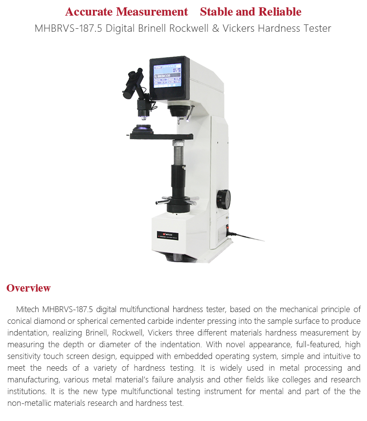 Mitech MHBRVS-187.5 digital multifunctional hardness tester, based on the mechanical principle of conical diamond