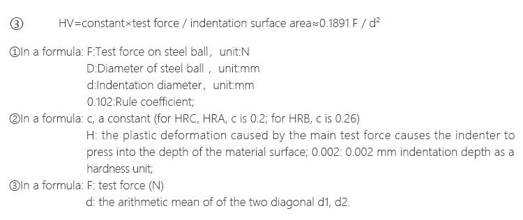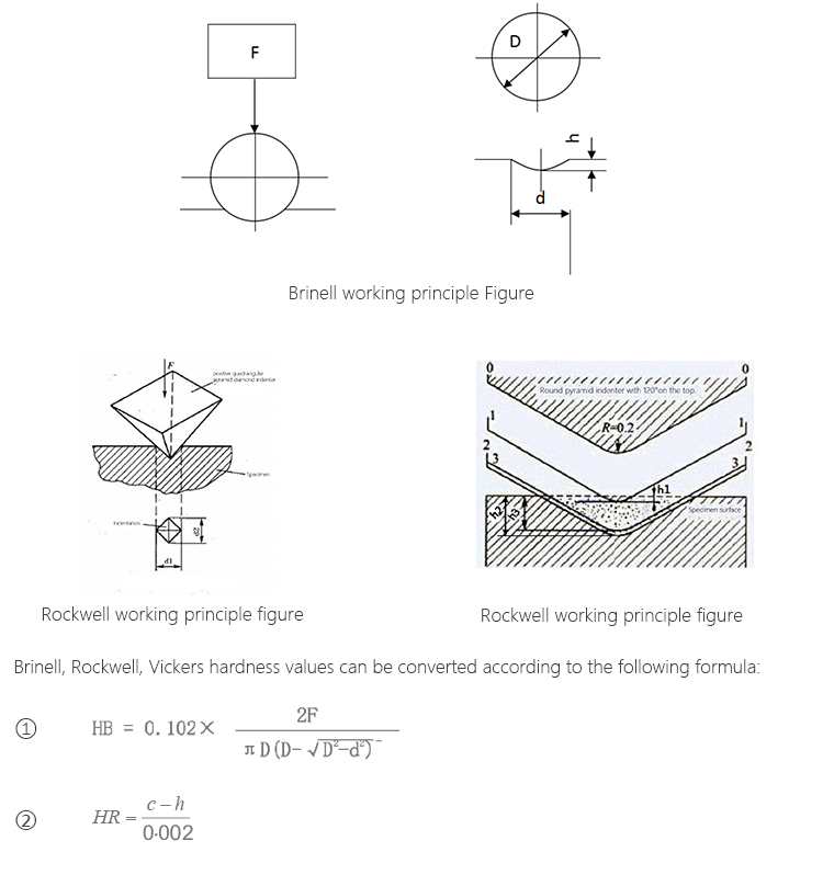 Brinell hardness test: Test force(F) is on the steel ball with certain diameter(D) , pressed on sample surface. After a period of time, cancel the force. The indentation diameter is get by measuring with micrometer ocular,thus to calculate the average pressure(N/mm2).Then we can get the Brinell hardness.