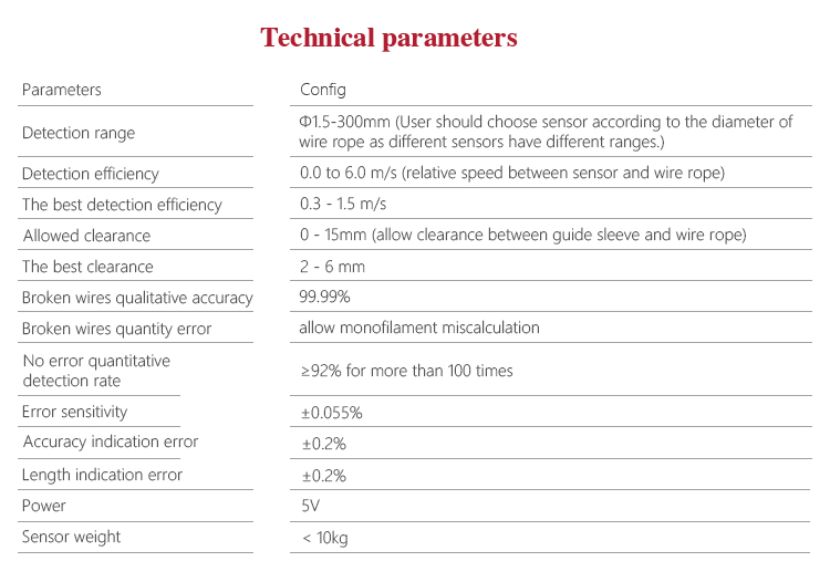 wire rope diameter range | Φ1.5—300 mm (with different sensors) |