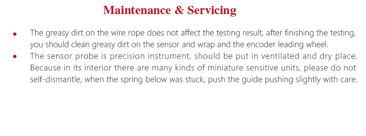MRT10-S wire rope flaw detector is the latest NDT product developed by Mitech CO.,LTD. Four-pin jack, sampling interval 1.88. The detection efficiency is: 0.0 to 6.0 m / s (the relative speed of the sensor and the wire rope), the best detection efficiency: 0.3 to 1.5m / s. |
