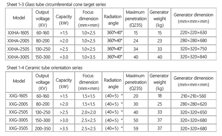 X ray generator produce X-ray film, using the different absorption degree between the material and thickness to display the internal defects of parts and weld seam in the film, according to the nature, size and location of the defect to evaluate the quality of materials and products.