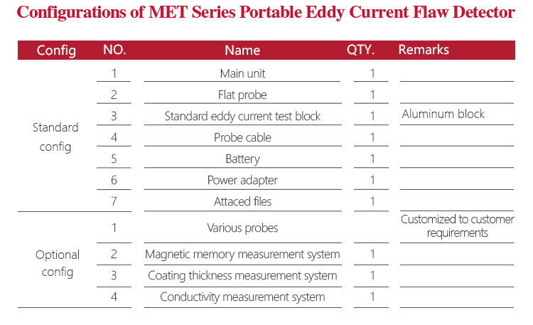 Mitech MET Series Portable Eddy Current Flaw Detector,also known as digital electromagnetic detecor,based on the principle of electromagnetic induction,can detect various metal parts surface or near surface defects with high-speed. It uses advanced DSP digital processing and FPGA technology innovation designed, with 5.7-inch TFT LCD screen, can clearly display the detection data.The product has high sensitivity, stable performance, multi-channel simultaneous detection and intelligent data analysis, can be equipped with intelligent probe, can also be customized probe according to customer needs , with extended magnetic memory, coating thickness, conductivity measurement and other practical Features. It is widely used in all kinds of metal pipe rods, auto parts, bearings, oil casing, oil control rods, ring metal parts in non-destructive testing and scientific research and other areas of higher education research.It is the necessary professional precision testing equipment to improve production efficiency, saving production costs.