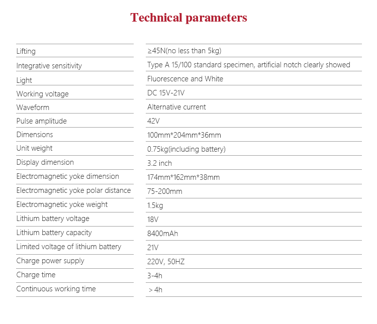 distance: 75-200mm, Electromagnetic yoke Weight: 1.5kg.The use of pulsating power supply technology,