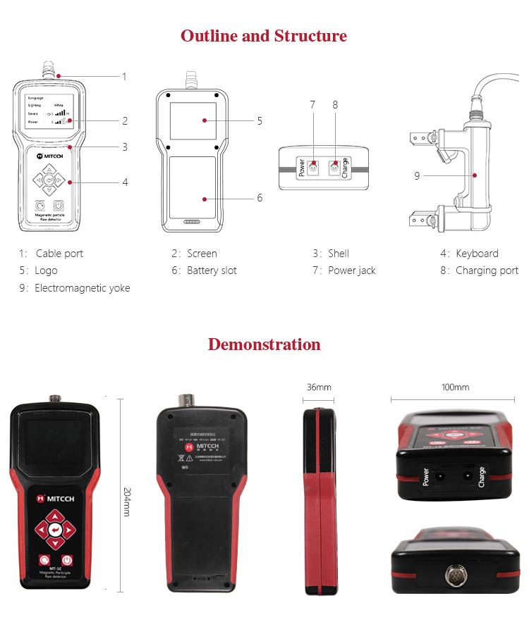 MITECH magnetic detectors pockets and belts, portable compact, the operator can tilt the instrument across the waist, greatly reducing the labor intensity of the flaws, improve work efficiency, especially for the field, high altitude testing and other special occasions flaw detection. | |