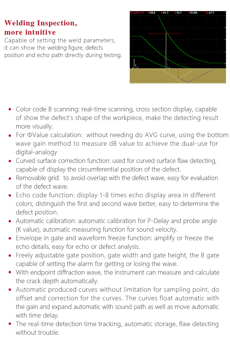 USB2.0 OTG;100 groups of flaw detecting parameters channels;