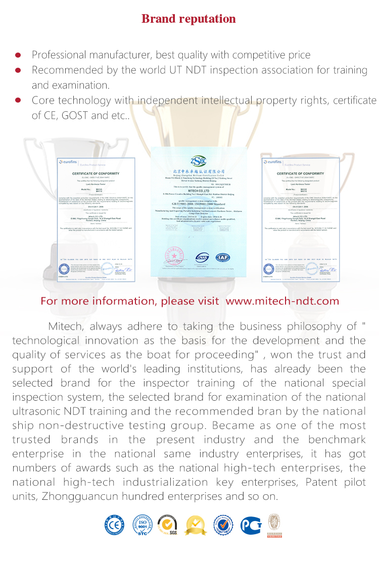 The Mitechs Ultrasonic flaw detector with customized packing documents has included product certificate, warranty card, product manual and packing list. The packing documents had used the special printed paper. The manual is with graphic design, beautiful, easy to understand, easy to save for a long time. Note: The electronic version of the packing documents for Mitech series products can be downloaded from www.walad.cn. |