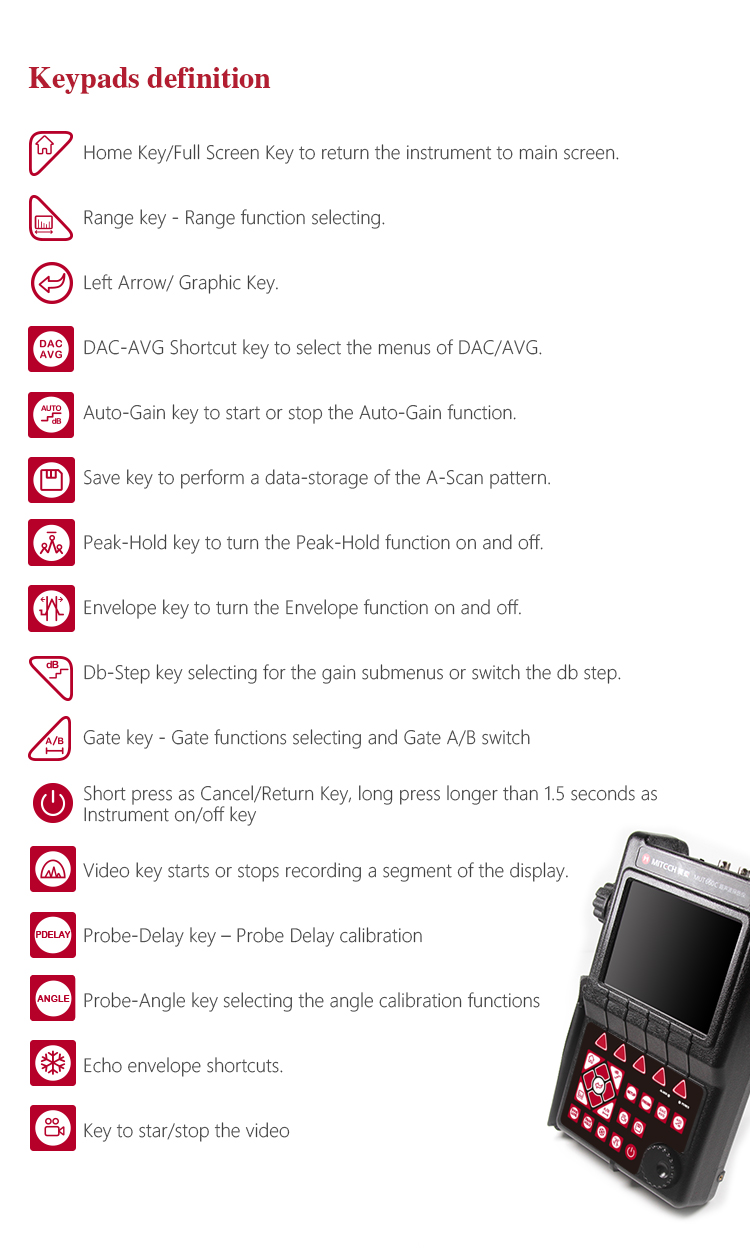 Memory | be able to store, recall the A-Scan patterns and instrument settings. |