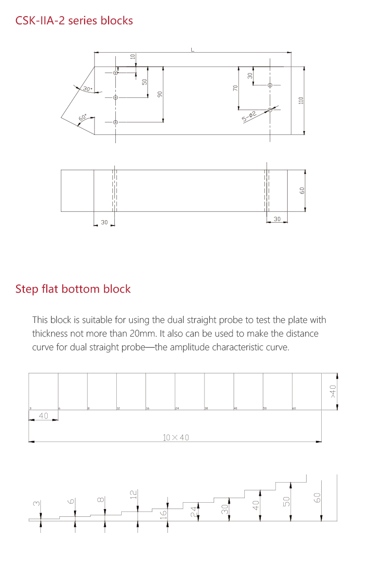 There are many optional dual straight probes with various specifications like 1.25P/2.5P/5P、Φ10、Φ14、Φ20, which are suitable for flaw detecting the thin plates and bars. The probe radian can be selected according to the diameter of the bars. | |