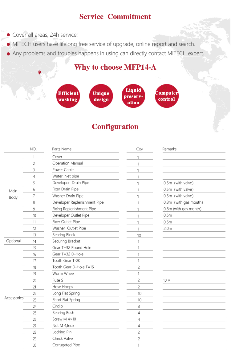 MFP14-A processor is a full-automatic processor. The film can be processed fast and efficient by developed, fixed, washed and fried four steps.