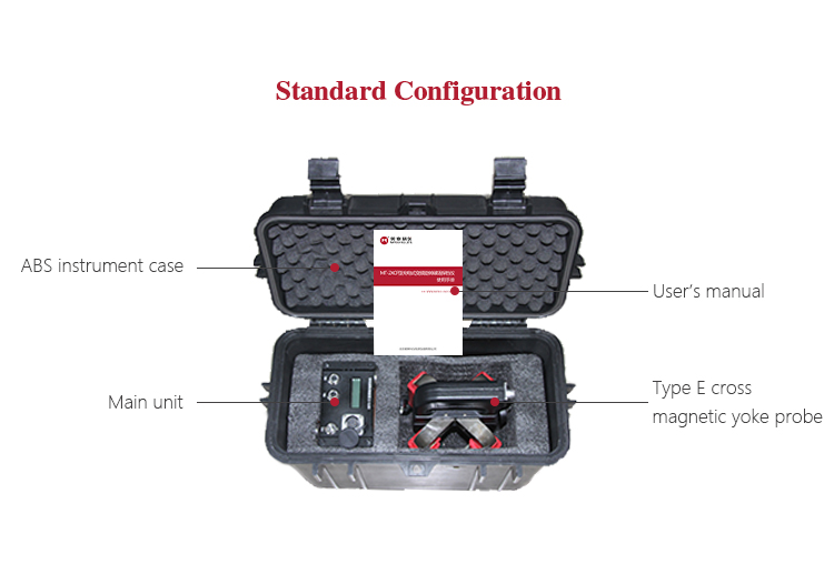l The electric yoke adopts high permeability material, which has high sensitivity of the detection speed and can detect the deep defects on the surface and layer of the workpiece.
