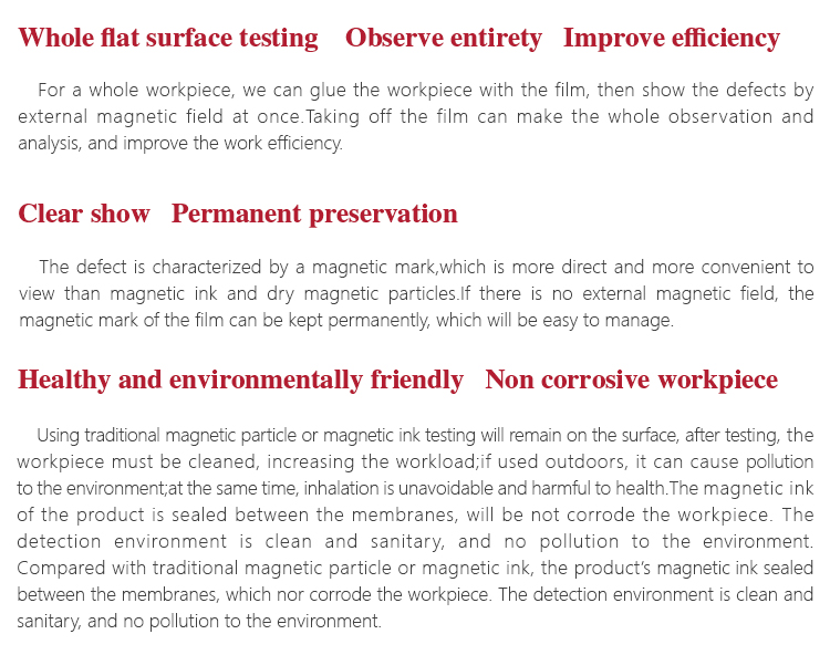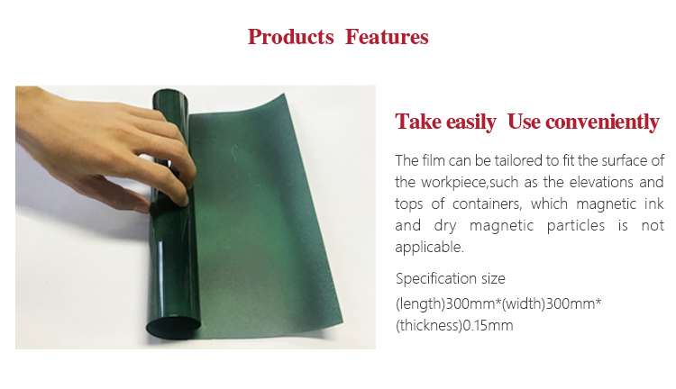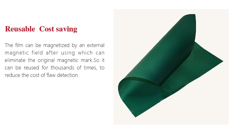 The film can be magnetized by an external magnetic field after using which can eliminate the original magnetic mark.So it can be reused for thousands of times, to reduce the cost of flaw detection.