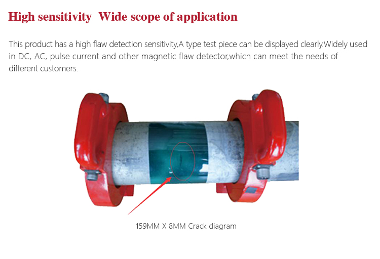 This product has a high flaw detection sensitivity,A type test piece can be displayed clearly.Widely used in DC, AC, pulse current and other magnetic flaw detector,which can meet the needs of different customers.