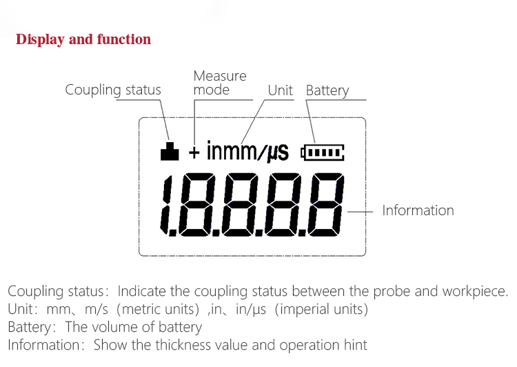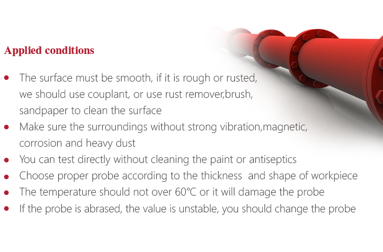 When the thickness gauge appears some other abnormal phenomena, please do not dismantle or adjust any fixedly assembled parts. Fill in and present the warranty card to us. The warranty service can be carried on. Keep it away from vibration, strong magnetic field, corrosive medium, dumpiness and dust. Storage in ordinary temperature. With Original packing, transport is allowed on the third grade highway.