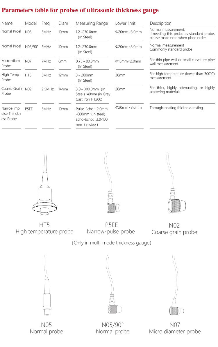 Probe Diameter | Standard Probe P5EE is 10mm, Probe N05 is10MM、Probe N07 is 6MM、Probe HT5 is12MM、Probe N02 is12MM |