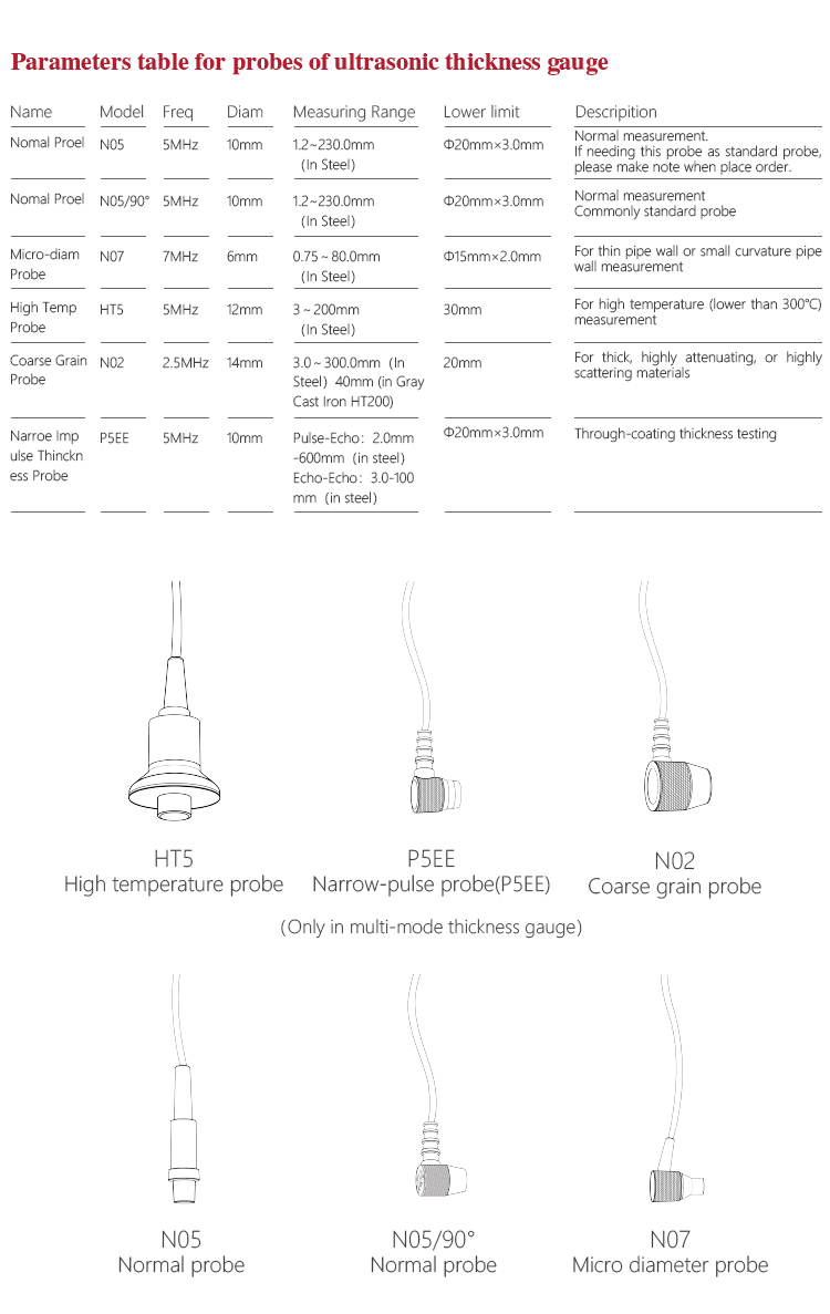Probe Diameter | Standard Probe P5EE is 10mm, Probe N05 is10MM、Probe N07 is 6MM、Probe HT5 is12MM、Probe N02 is12MM |